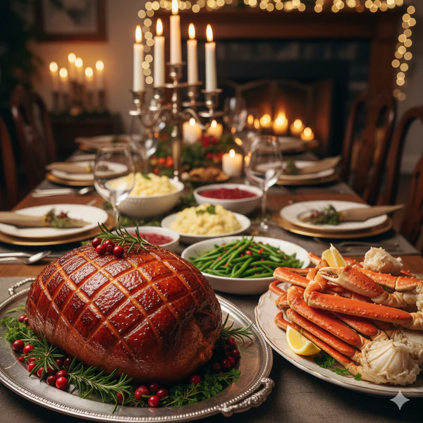 Alongside the ham are ten pounds of snow crab for sale, prized for its delicate texture and subtly sweet, buttery meat. The legs and claws are meaty, easy to serve, and perfect for sharing, whether you are hosting a holiday gathering or sitting down to a memorable family meal.